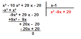 Solução: questão de matemática do Concurso Público de Admissão às Escolas de Aprendizes-Marinheiros/CPAEAM/2020. Para resolvê-la, precisamos obter as raízes (x1,x2 e x3) do polinômio p(x) e depois calcular a área lateral de um paralelepípedo retângulo de medidas (x1, x2 e x3).Primeiramente, vamos obter as raízes do polinômio p(x). Perceba que 1 é uma raiz desse polinômio, então p(x) é divisível por (x-1). Procedemos a divisão de x³ - 10 x² + 29 x - 20 por (x-1).