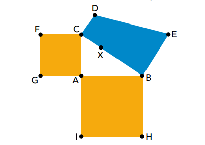 • o trapézio retângulo BCDE, construído sobre a hipotenusa BC, que contém o ponto X.