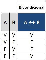 Vamos analisar a tabela verdade da bicondicional.